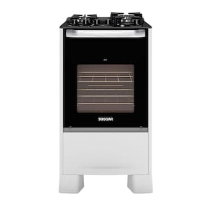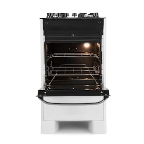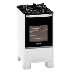 DADOS TÉCNICOS: - Voltagem: Bivolt - Cor: Branco - Quantidade de bocas: 4 Bocas - Acendimento: Automático - Tipo de mesa: Vidro temperado - Instalação: Fogão de piso - Funcionamento: Gás - Capacidade do forno: 56L - Tampa: Não - Grades do forno: 1 grade fixa e 1 grade deslizante com 3 níveis de ajuste no forno - Botões Removíveis: Sim - Tipo de gás: GLP - Trempes: Trempes individuais de ferro fundido com 6 apoios - Medidas do fogão (AxLxP): 92x49,5x64,3 cm - Peso: 24 Kg - Garantia: 12 meses