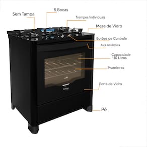 Se você procura um fogão potente, espaçoso e ideal para preparar grandes receitas, este modelo 5 bocas com forno de 110 litros é a escolha perfeita.