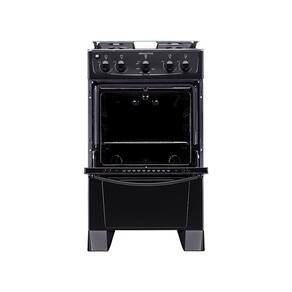Possui mesa em inox, tampa de vidro na mesa, grades duplas de aço esmaltado, acendimento automático e botões removíveis, facilitando na hora da limpeza.