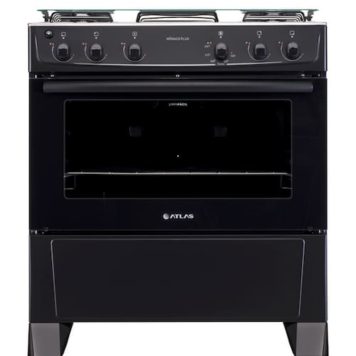 ESPECIFICAÇÕES TÉCNICAS Marca: Atlas Modelo: Mônaco Plus Cor: Preto Voltagem: Bivolt Quantidade de Bocas: 5 bocas Eficiência Energética: A Padrão de Tomada: 10A Tipo de Acendimento: Automático Acabamento da Mesa: Inox Instalação: Fogão de Piso Convecção: Não Grill: Não Funcionamento: Gás Capacidade do Forno: 86,5 Litros Acabamento do Forno: Limpa Fácil Luz no Forno: Não Vidro do Forno: Vidro Duplo Tampa: Sim Trempes: Dupla de aço esmaltado Grades do Forno: 1 Grade deslizante Timer: Não possui Botões Removíveis: Sim Potência dos Queimadores: 2Q Ramal de 1,7kW, 2Q Família de 2,0kW e 1Q Mega Chama de 3,0kW Comprimento do Cabo de Energia: 96 cm Dimensões do Produto (AxLxP): 58.5 x 75.0 x 88.6 cm Dimensões da Embalagem (AxLxP): 64.0 x 81.0 x 95.0 cm Peso Líquido: 24.0 Kg Peso Bruto: 27.0 Kg Garantia: 12 Meses