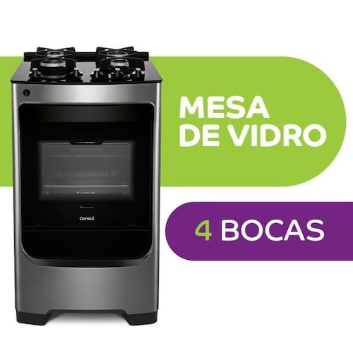 Características do Produto: Modelo: CFO4VAR Marca: Consul Cor: Inox Altura: 94,8 cm Largura: 51,8 cm Comprimento: 60,3 cm Peso: 27,5 Kg Tipo de Fogão: Piso Quantidade de Fornos: 1 Quantidade de Bocas: 4 Bocas Tipo de Acendimento: Automático Alimentação: Bivolt