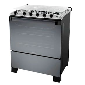 Características técnicas: Cor frontal: Prata Cor lateral: Preto Plataforma -mm-: 760 Frequência da rede -Hz-: 60 Potência elétrica nominal máxima-W- : 25 Piso/embutir: Piso Quantidade de queimadores: 5 - 2 pequenos,1 grande, 1 médio e 1 tripla chamas- Potência total da mesa -kw-: 11,3 Controle integrado na mesa: Sim Indicadores de temperaturas estampados na mesa: Sim Queimador grande - Especial: Tripla chamas Acabamento capa queimador: Esmaltado Brilhante Acabamento câmara queimador: Forjado polido c/ saia Sistema: Base c/Suporte p/ Eletrodo Material da mesa: Aço Inox 430 e Aço Inox 439 Acabamento: Polido / Escovado Manípulos de queimadores das mesa: Injetado Trempes: Integrada Material da trempe: Arame Redondo Classificação energética: A Acendimento: Automático Geometria do tampão de vidro: Liso plano Grafismo no tampão: Sim Nº de Cavidades no forno: 1 Manípulo do queimador forno: Injetado, grafismo indicador de temperatura do forno Material do Puxador: Alumínio Potência -kW-: 2,4 Escalonamento -°C-: 180/200/220/250/270 Timer: Não Classificação energética: A Acendimento: Automático Prateleira:2 Fixas Luz no forno: Sim Lâmpada inclusa: Sim 220V Acabamento lateral do forno: Limpa Fácil Revestimento do forno: Fundente a pó Volume -litro-: 101 Consumo de manutenção do forno -kg/h-: 0,159 Vazão total -L/min-: 10,58 Potência total mesa+forno - GLP -kW-: 13,7 Potência total mesa+forno - GN -kW-: 13,7 Acabamento externo da porta -vidro + coluna-: Vidro Acabamento interno da porta -vidro + coluna-: Vidro + aço Acabamento externo laterais: Chapa pintada - Branco / Preto Fosco Material dos pés: Polipropileno