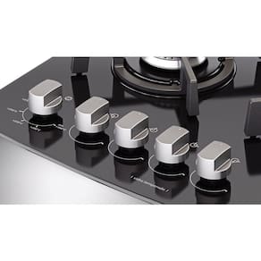 Os botões do fogão saem facilmente para uma limpeza mais profunda e eficaz.