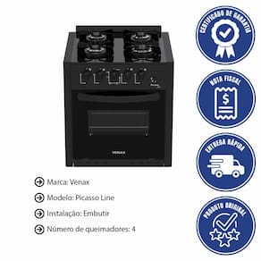 De 3 a 4 bocas- Se você busca elegância, praticidade e eficiência, o Fogão Venax Picasso Line é a escolha perfeita para o seu lar.