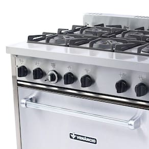Forno equipado com válvula de segurança termostática, que permite controle de temperatura, resultando na melhoria do desempenho na cocção, além de gerar economia de gás