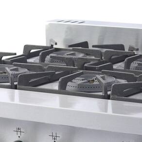 Queimadores superiores 5 grandes e um pequeno e grelhas de ferro fundido com acabamento esmaltado a fogo