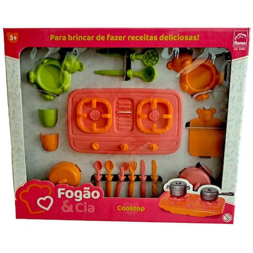 Fogao e Cia - Fogaozinho - 5303 O Fogão Cia - Fogãozinho é um conjunto de completo de cozinha Acompanha diversos acessórios para criança brincar de cozinhar onde quiser