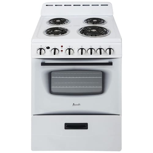 O Fogão Elétrico Avanti é a solução ideal para espaços compactos como apartamentos, RVs e pequenas casas. Com capacidade de forno e 4 queimadores de bobina- equipados com tigelas refletoras cromadas e sensores de segurança de temperatura, este fogão oferece desempenho de cocção eficiente e confiável. O forno apresenta uma porta de vidro emoldurada sem emendas, função de assar/grelhar e um assador na altura da cintura com uma bandeja para opções de cocção versáteis. Recursos adicionais incluem uma gaveta de armazenamento deslizante, termostato eletrônico do forno, luz do forno com interruptor ON/OFF e um temporizador de 60 minutos. Perfeito para assar, grelhar e assar em cozinhas pequenas, apartamentos, RVs e pequenas casas. 4 QUEIMADORES DE BOBINA COM RECURSOS DE SEGURANÇA: Inclui quatro queimadores com tigelas refletoras cromadas e sensores de segurança de temperatura para cocção confiável. DESIGN DE FORNO AMIGÁVEL AO USUÁRIO: Possui um forno de assar/grelhar com assador na altura da cintura, porta de vidro emoldurada sem emendas e uma bandeja de assar incluída. RECURSOS E CONTROLES MODERNOS: Equipado com termostato eletrônico do forno, luz do forno com interruptor ON/OFF, um temporizador de 60 minutos e luzes indicadoras de superfície e forno para maior conveniência. DURÁVEL E CONFORME AO ADA: Inclui uma gaveta de armazenamento deslizante com puxador.