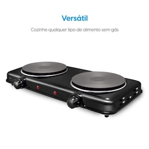 Fogão Elétrico Cooktop Portátil 2 Bocas Elgin 220V com 5 níveis de temperatura e controle independente para cada boca.Luz de calor residual