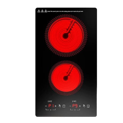 - ?Queimador de fogão duplo de cerâmica embutido?O fogão elétrico GTKZW de 110 V pode ser embutido ou em pé livre. Seu fogão de cerâmica preta e superfície lisa, resistente a arranhões, resistente ao desgaste, resistente a altas temperaturas e fácil de limpar.