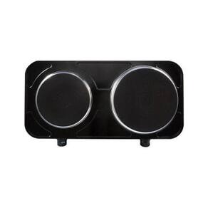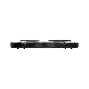 Fogão elétrico de mesa com dois pratos de aquecimento de potência individual ajustável. Prato médio de 1000W e prato grande de 1500W. Estrutura em aço inoxidável.Luz de calor residual