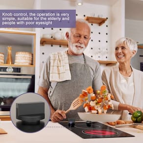 - ?Fogão elétrico controlado por botão?Em comparação com outros fogões elétricos multifuncionais com sensor de toque, este fogão elétrico controlado por botão não tem botões ou funções complicadas. Cada botão controla apenas um queimador, portanto, mesmo para idosos, este fogão elétrico radiante é muito útil e simples. A maioria dos idosos tem pouca visão, então o fogão elétrico com botão é a melhor escolha para eles.