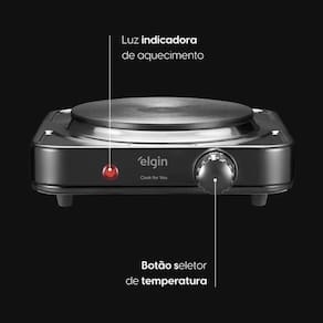 1000W de potência, Aquece rapidamente e mantém a temperatura estável, Controle de temperatura ajustável, Portátil e compacto, Base antiderrapante, Fácil de limpar, Compatível com diversos tipos de panelas.Lâmpada piloto