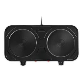 Fogão elétrico portátil com 2 bocas, controle individual de temperatura e design compacto.Alimentação