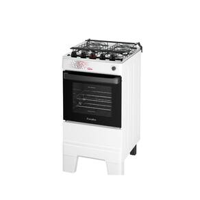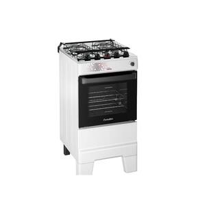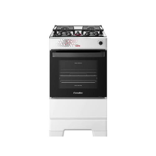 De PisoFogão Esmaltec 4 Bocas Ideal Master Mesa Inox Tampa de Vidro Forno 50 Litros Branco T4ITB