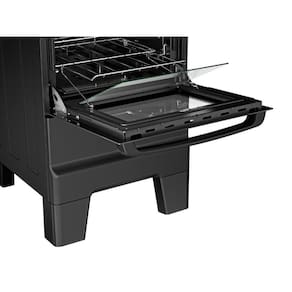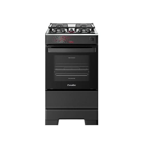 Mesa de aço inox com tampão de vidro e acendimento automático.