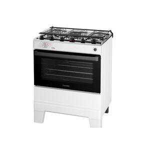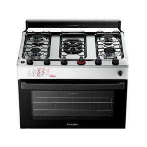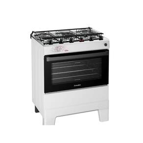 SimFogão Esmaltec 5 Bocas Ideal Master Mesa Inox Tampa de Vidro Forno 84 Litros Branco T5ITB