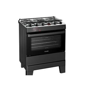 SimFogão Esmaltec 5 Bocas Ideal Master Mesa Inox Tampa de Vidro Forno 84 Litros Preto T5ITP