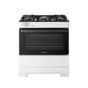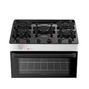 Fogão Esmaltec 5 Bocas Ideal Top Glass Mesa de Vidro Forno 84 Litros Branco T5VAB