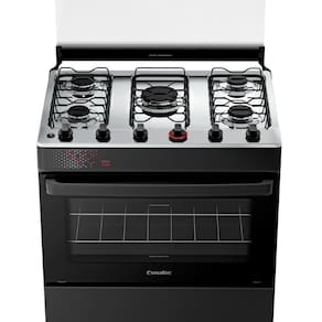 Fogão Esmaltec 5 Bocas Ideal Top Mesa Inox Tampa de Vidro Forno 84 Litros Preto T5IAP