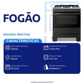 Fogão Esmaltec Ideal Pop 5 Bocas Manual Mesa Aço Inox