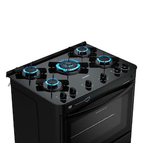 Queimador tripla chama: Três anéis de chama. Agilidade e potência no preparo dos pratos.