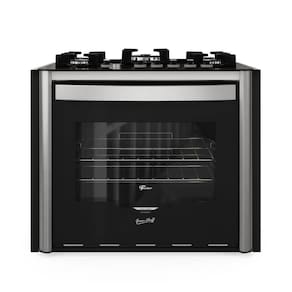 - Acabamento: Mesa de vidro temperado na cor preta; Suporte da trempe esmaltado em easy clean preto; Trempe individual; Manipuladores (botões) na cor preto removíveis; Fogão com 5 queimadores: 1 queimador tripla chama ( 3750W) 1 queimador rápido (2850W), 3 queimadores semirrápidos (1950W); Forno com 1 queimador (3500W); Potência elétrica grill/dourador: 1000W; Puxador em alumínio escovado anodizado; Laterais em aço pintado silver; Porta com vidro duplo serigrafado e amplo visor; Perfil frontal em aço pintado silver; Resistência interna do forno blindada; 2 Grades cromadas, ajustáveis, deslizantes e removíveis; Bandeja esmaltada para resíduos - removível; Corpo interno com revestimento especial easy clean de fácil limpeza.