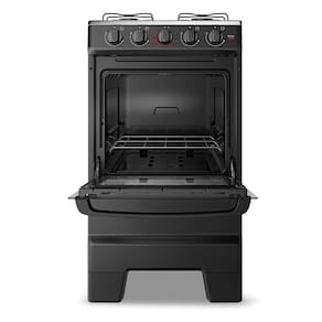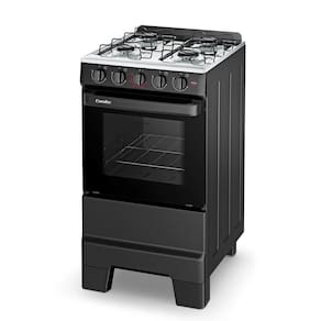 O fogao possui quatro queimadores, sendo dois deles de alta potencia, ideal para o preparo rapido de alimentos, e dois de potencia media, perfeitos para receitas que requerem cozimento mais lento e controlado, o acendimento e manual.