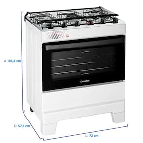 Queimadores: Com trempes duplas em aço esmaltado, ele é altamente durável e resistente ao desgaste do tempo, além de proporcionar maior estabilidade ao acomodar as panelas. A distribuição de potência dos queimadores é otimizada para atender a diferentes necessidades culinárias: dois queimadores para uso familiar, com potência de 2,0 kW cada, dois queimadores pequenos com potência de 1,7 kW, e um queimador superchama de 3,0 kW, ideal para preparos rápidos e intensos, como frituras ou grelhados.