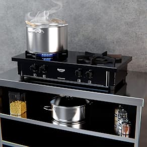 Queimadores Duplos de Alta Potência: Os dois queimadores possuem chama dupla e controle de intensidade independente, garantindo o preparo mais rápido dos pratos e o controle preciso para cada receita.