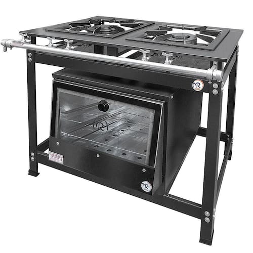 Este fogão profissional possui duas bocas duplas e uma estrutura reforçada fabricada em aço carbono com vincos e dobras para ganho de resistência. Além disso, conta com acabamento em pintura eletrostática epóxi e funcionamento a gás baixa pressão.