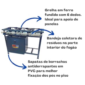 Acompanha grelhas internas, para melhor utilização calorifica da queima do gás, tornando-o mais econômico e eficaz