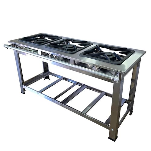 Com 3 queimadores duplos de 175mm cada, o fogão garante uma excelente performance com consumo de gás de 0,370kg/h por queimador. O modelo também é totalmente desmontável, facilitando o transporte e armazenamento.