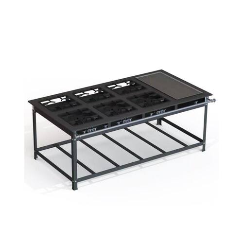 O Fogão industrial JL Colombo possui 6 bocas com chapa Bifeteira e ainda bandeja coletora e pés estampados em L. Possui material em chapa de aço carbono, 6 queimadores e grelhas em ferro fundido 30x30, Perfil 7