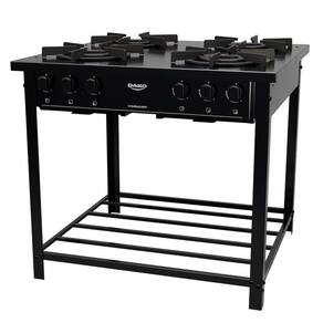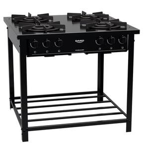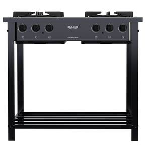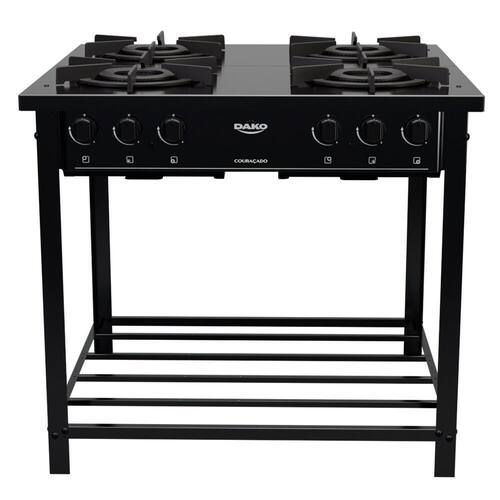 O Fogao Industrial 4 Bocas Dako Couracado, Dupla Chama e perfeito para quem deseja cozinhar com eficiencia. Feito especialmente para a linha industrial, o produto conta com mesa em Aco esmaltado com revestimento Limpa Facil. O acendimento do fogao e manual e o produto possui 4 queimadores, sendo 2 frontais com Dupla Chama de 5,2 kW e duplo controle, alem de 2 traseiros com Mega Chama de 4,1 kW. As grades extra largas e robustas de ferro fundido com 6 pontos de apoio suportam grandes panelas. Acompanha o produto bandeja coletora de residuos e base em trelica para armazenamento e suporte. Nao perca essa oportunidade e garanta ja o seu!