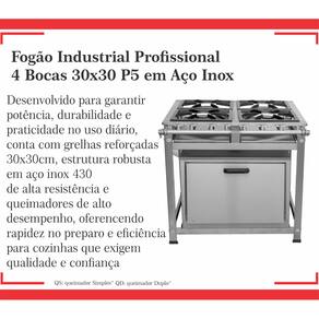 Fogão Industrial de Baixa Pressão À Gás GLP (BOTIJÃO)Linha Standard Perfil 5Grelhas em ferro fundido 30cmx30cm2 Queimadores Triplos 140mm 2 Simples 100mmBandeja coletora de resíduoChapa em aço Inox 430Forno de 92L Tampa em Aço InoxMedidas do Fogão Montado:Altura : 80cmLargura : 73cmProfundidade : 80cm Marca: Não Informado Ean: 7892242053813