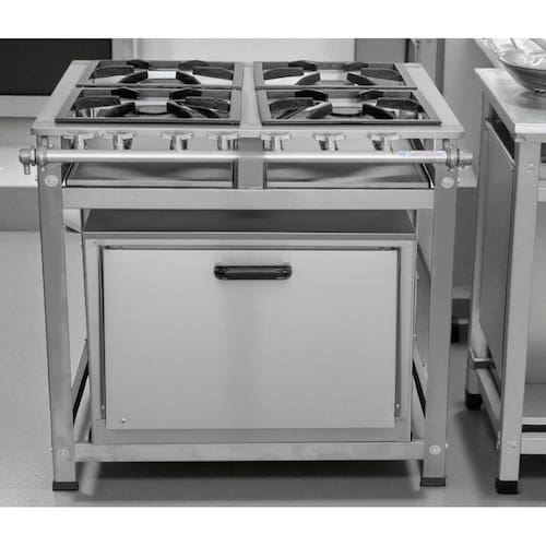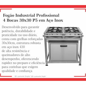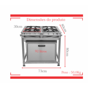 Fogão Industrial de Baixa Pressão À Gás GLP (BOTIJÃO)Linha Standard Perfil 5Grelhas em ferro fundido 30cmx30cm2 Queimadores Duplos 140mm 2 Simples 100mmBandeja coletora de resíduoChapa em aço Inox 430Forno de 92L Tampa em Aço InoxMedidas do Fogão Montado:Altura : 80cmLargura : 73cmProfundidade : 80cm Marca: Não Informado Ean: 7892242053813