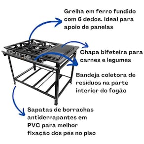 Conheça melhor o Fogão Industrial P7 4 Bocas 2QS 2QD Baixa Pressão com Chapa Bifeteira de Piso Metalfour