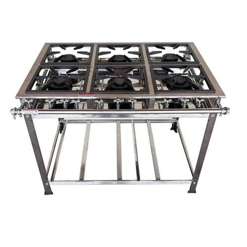 Fogão Industrial 6 Bocas 30x30 P5 de Baixa Pressão Leona 03 Queimadores 140mm 03 Queimadores 100mm Grelhas em ferro Fundido de 06 pontas Grelhas 30x30 Estrutura confeccionada em Aço Inox 430 Garantia do produto de 06 Meses contra defeitos de Fabricação
