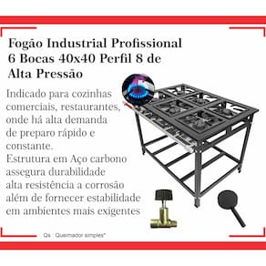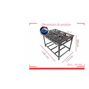 Fogão Industrial 6 Bocas 40x40 Ap p806 Queimadores Simples 130mmGrelhas em Ferro Fundido Queimadores em Ferro FundidoEstrutura Confeccionada em Aço CarbonoPintura Eletrostatica Perfil 8 (8cm Entre os Queimadores) Garantia: 06 Meses Contra Defeitos de Fabricação.Medidas: Altura : 80cmLargura : 148cmProfundidade : 111cm Marca: Não Informado Ean: 7894612681350