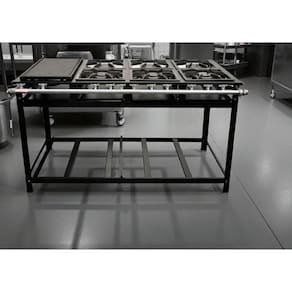 Fogão Industrial de Baixa Pressão À Gás GLP (BOTIJÃO)Linha Tradicional Perfil 7Grelhas em ferro fundido 30cmx30cm3 Queimadores Triplos 170mm 3 Simples 130mmBandeja coletora de resíduoPintura preta texturizada epóxi de alta resistênciaChapa em aço carbonoMedidas do Fogão Montado:Altura : 80cmLargura : 151cmProfundidade : 88cm Marca: Não Informado Ean: 7892702012435