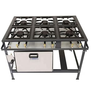 O Fogão Industrial 6 Bocas com Forno MetalBrey é a escolha certa para quem busca desempenho e resistência em cozinhas profissionais. Seu design robusto e acabamento de alta qualidade garantem praticidade e durabilidade no dia a dia. Características principais: 6 bocas com queimadores de 110 mm em ferro fundido Grelhas de 30 x 30 cm com 6 pontas Forno em aço galvanizado com porta em inox ou vidro temperado Quadro superior com perfil de 5 cm entre grelhas Registros de alta pressão em latão forjado Bandeja coletora de resíduos Pintura eletrostática cinza grafite Leve mais potência, agilidade e durabilidade para a sua cozinha . Garanta o seu agora Marca: Não Informado