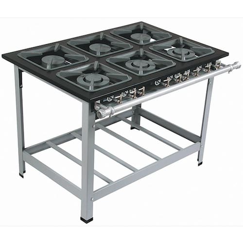 - Mesa monobloco, com perfil 6,5 cm sem soldas. Muito mais segurança e durabilidade. - Queimador simples com a potência de 300 g/h e queimador duplo de 600 g/h - Gambiarra (tubulação que leva o gás para os registros) é de de polegada. - Queimador simples com 1 registro de metal cromado - Queimador duplo com 2 registros de metal cromadoo - Quantidade de bocas: 6 bocas, 3 simples de 300g/h e 3 duplas de 600g/h - Dimensões da grelha:30 x 30 cm - Dimensões: 80 x 107 x 82 cm (A x L x P) - Peso Líquido: 48,00 kg
