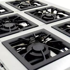 Possui seis queimadores em ferro fundido, sendo 3 simples e 3 duplos, proporcionando potência e versatilidade para o preparo de diversos tipos de alimentos.