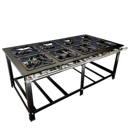 Fabricado em aço carbono com pintura eletrostática a pó, o fogão oferece alta resistência contra corrosão e desgastes, além de um acabamento sofisticado. Sua mesa totalmente estampada impede o acúmulo de sujeira nas emendas, facilitando a higienização e mantendo o ambiente sempre limpo. O tubo de alimentação de gás de 1 1/4 polegada proporciona excelente vazão para os queimadores, garantindo um cozimento ágil e eficiente. As oito grelhas de ferro fundido 40x40 cm suportam panelas e tachos de grande porte, permitindo um cozimento rápido e estável, sendo ideais para cozinhas de alta demanda. Além disso, o Fogão Cefaz Linha Gold é totalmente desmontável, facilitando o transporte e armazenamento. Se você busca um fogão industrial robusto, potente e confiável para sua cozinha profissional, essa é a escolha perfeita.