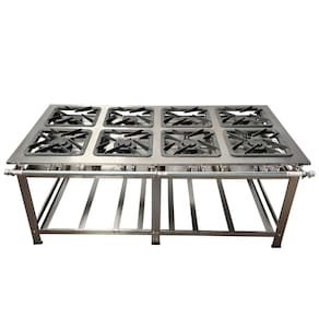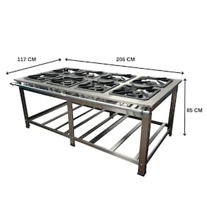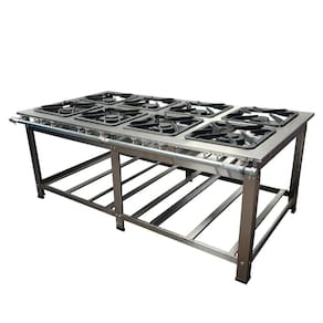 Sua mesa estampada evita o acúmulo de resíduos, garantindo máxima higiene durante o uso. O tubo de alimentação de gás de 1 1/4 proporciona boa vazão para os queimadores, enquanto as grelhas de ferro fundido 40x40 oferecem durabilidade e eficiência no preparo de alimentos, suportando longas horas de funcionamento e altas temperaturas. Fabricado em aço inox 304 de 1mm, este fogão é resistente, fácil de limpar e ideal para ambientes de grande movimentação.