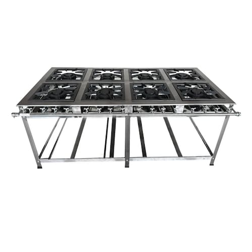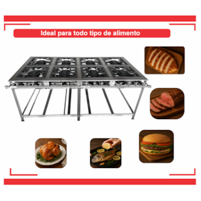 Fogão Industrial de Baixa Pressão À Gás GLP (BOTIJÃO)Linha Tradicional Perfil 7Grelhas em ferro fundido 30cmx30cm8 Queimadores Duplos 170mmBandeja coletora de resíduoChapa em aço Inox 430Medidas do Fogão Montado:Altura : 80cmLargura : 151cmProfundidade : 83cm Marca: Não Informado Ean: 7890161242653