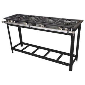 Para quem procura um fogão industrial baixa pressão com excelente custo benefício e alto desempenho o fogão a gás 4 bocas 2 duplas em linha Venâncio é a melhor escolha! Este fogão profissional é ideal para ser utilizado em bares, restaurantes, lanchonetes, petiscarias, chácaras, espaços de festas, sítios e muito mais. Sua estrutura é confeccionada em aço carbono com pintura a pó eletrostática e base fosfatizada, proporcionando muito mais durabilidade e resistência ao equipamento. Conta com grelhas 30x30 e queimadores fabricados em ferro fundido, além de queimadores simples e duplos com 100mm e 160mm de diâmetro respectivamente, para máxima potência do fogão a gás 4 bocas. Os queimadores deste fogão industrial possuem alto rendimento e sua potência é de 4.959 kca/h para as bocas duplas e 1.938 kcal/h para as simples. Além disso, possui encaixe de fácil remoção para higienização e manutenção do produto!