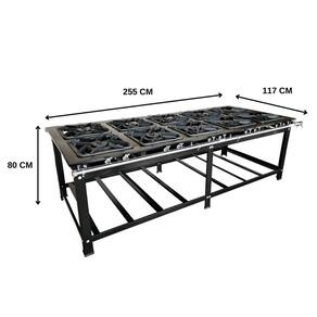 O Fogão Industrial de Centro Cefaz Linha Diamond é a escolha perfeita para restaurantes, lanchonetes, escolas, cozinhas industriais e qualquer estabelecimento que necessite de um equipamento robusto, eficiente e de alta qualidade. Com 10 bocas duplas, ele foi projetado para agilizar o preparo de alimentos em grandes quantidades, mantendo um visual elegante e moderno.Sua mesa é toda estampada, evitando o acúmulo de resíduos e garantindo máxima higiene. O tubo de alimentação de gás de 1" 1/4" polegada oferece uma vazão eficiente, enquanto as 10 grelhas de ferro fundido 40x40 suportam panelas e tachos pesados, proporcionando cozimento rápido e uniforme, mesmo em longas horas de uso.