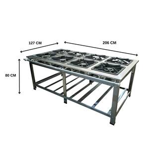 O Fogão Industrial de Centro 8 Bocas 4 Duplas Cefaz Linha Gold Baixa Pressão Inox C-I430-CFZG-167 é um equipamento robusto e eficiente, ideal para estabelecimentos como restaurantes, lanchonetes, escolas e qualquer tipo de comércio que necessita de um produto de alta qualidade. Este fogão industrial auxilia e agiliza o serviço na cozinha, proporcionando um visual bonito e uma performance de alto nível. Com uma mesa estampada que evita o acúmulo de resíduos, ele garante máxima higiene no preparo dos alimentos. Equipado com um tubo de alimentação de gás de 1 1/4 polegada, o fogão oferece uma excelente vazão de gás para os queimadores. As grelhas de 40x40 cm, feitas de ferro fundido, são projetadas para suportar panelas e tachos pesados, permitindo um cozimento rápido e eficiente, mesmo em longas horas de funcionamento e altas temperaturas. A estrutura do fogão, produzida em aço inox 430 com espessura de 1,0 mm, é totalmente desmontável, facilitando o transporte e o armazenamento. Este fogão é a escolha perfeita para quem busca eficiência, durabilidade e qualidade na cozinha, proporcionando uma experiência de uso superior e garantindo a satisfação dos clientes.
